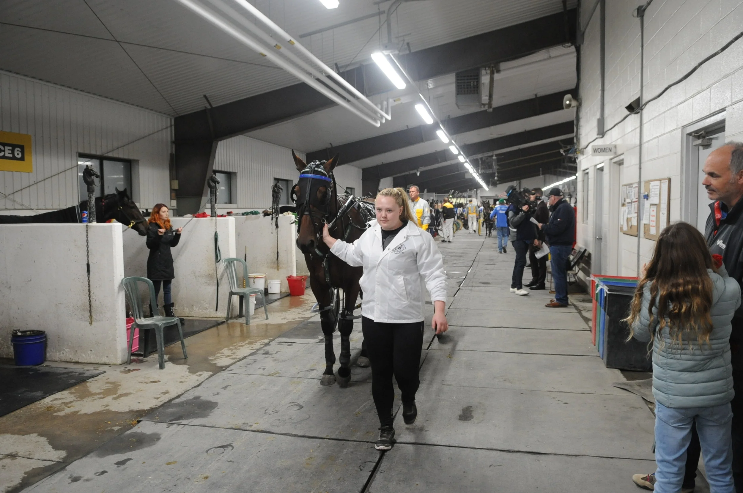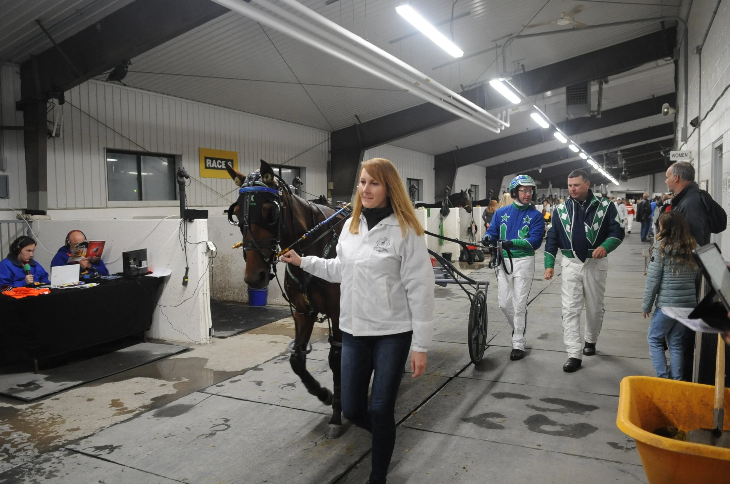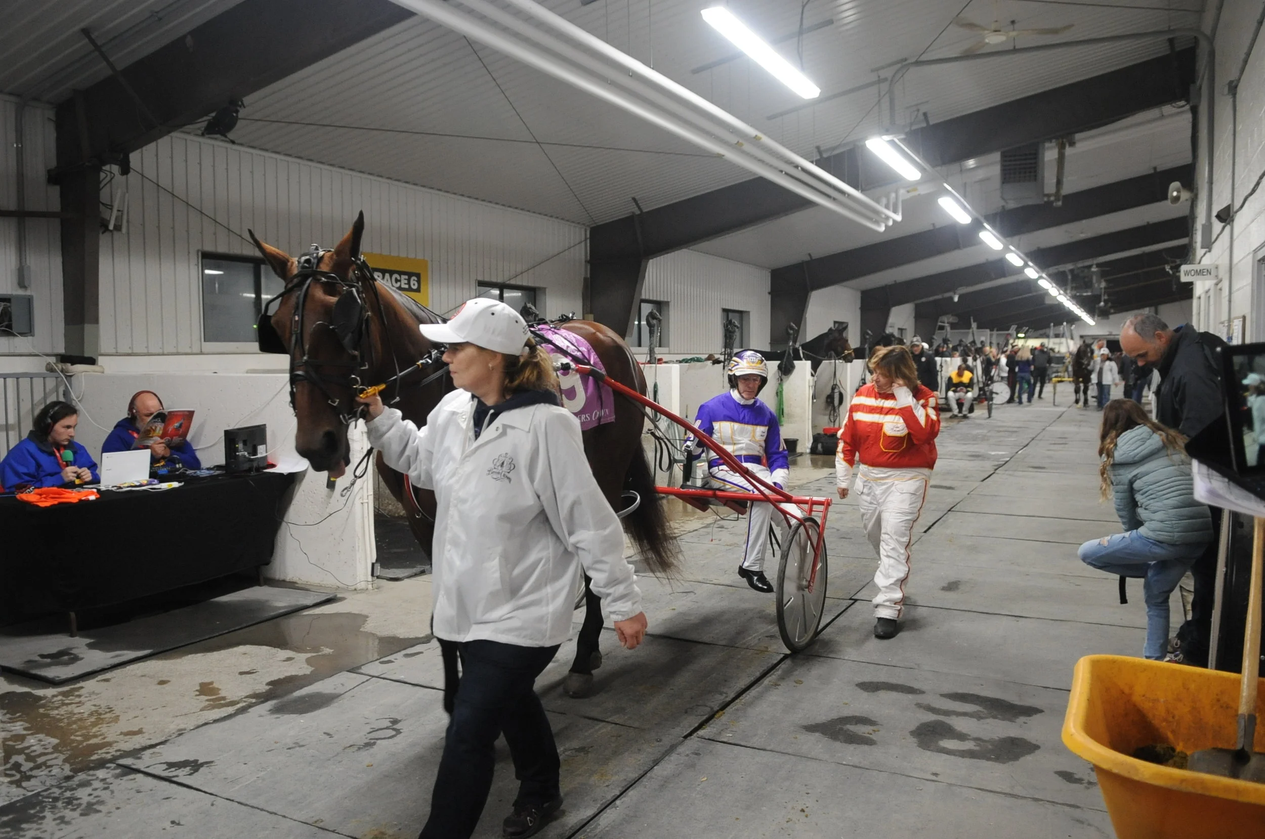 Lyons Sentinel was hanging in determinedly as New Year flattened out from her first-over challenge but the field was closing in on the leaders and Reflect With Me had the most energy and McCarthy kept her to her task getting there in the final strides in the 1:50 3/5 mile. The clocking was a fifth off the Crown record. Lyons Sentinel held the place spot with Marloe Hanover slipping between fillies for third. New Year and Looksgoodinaromper rounded out the top five.