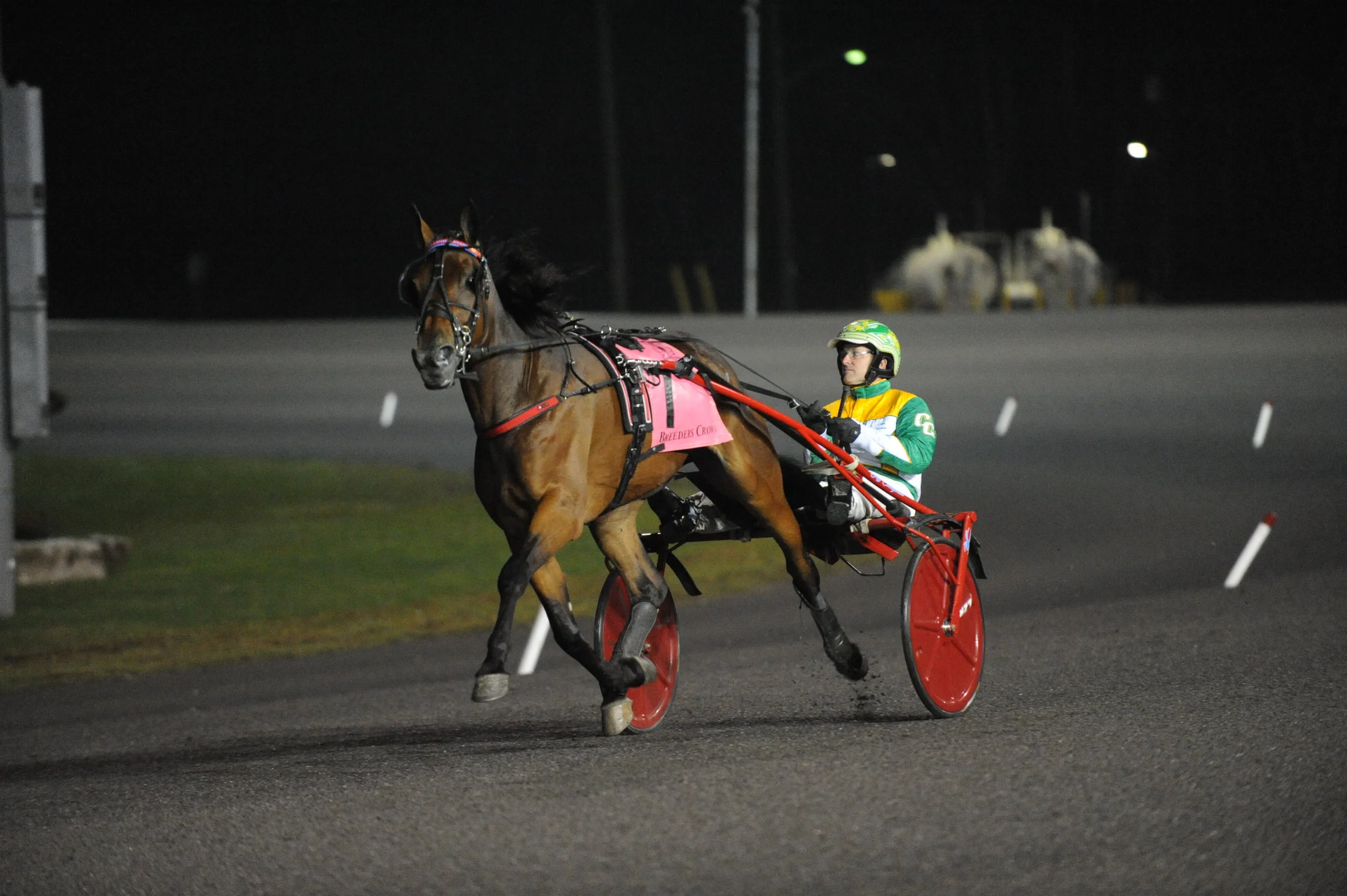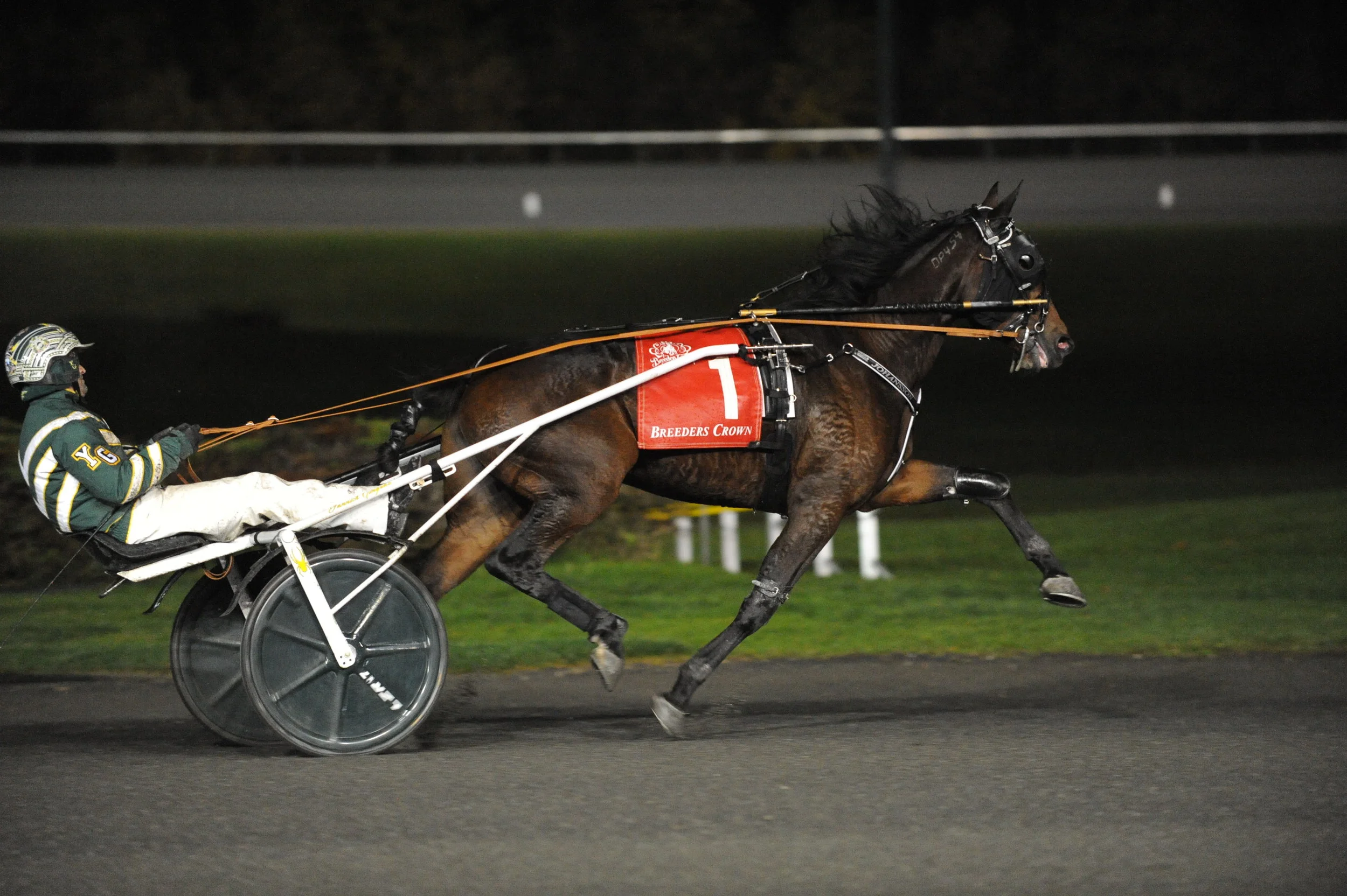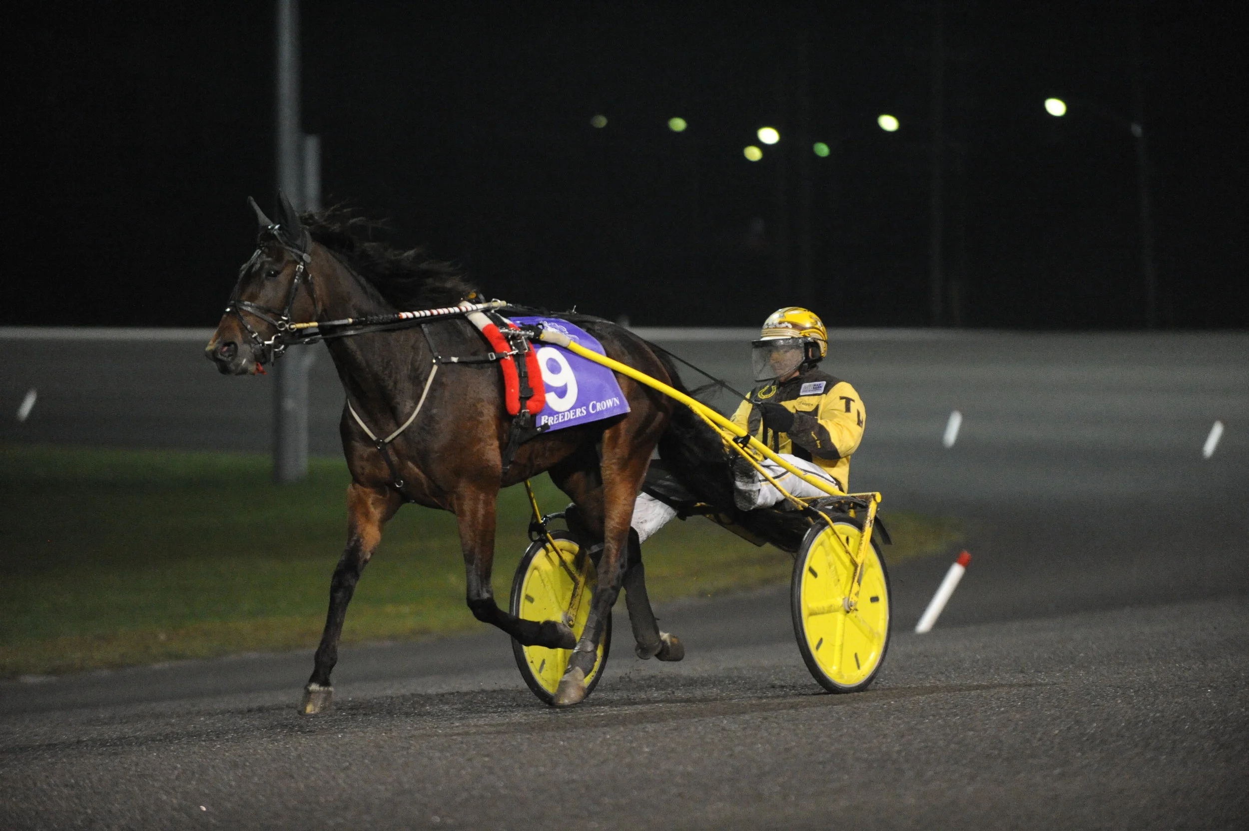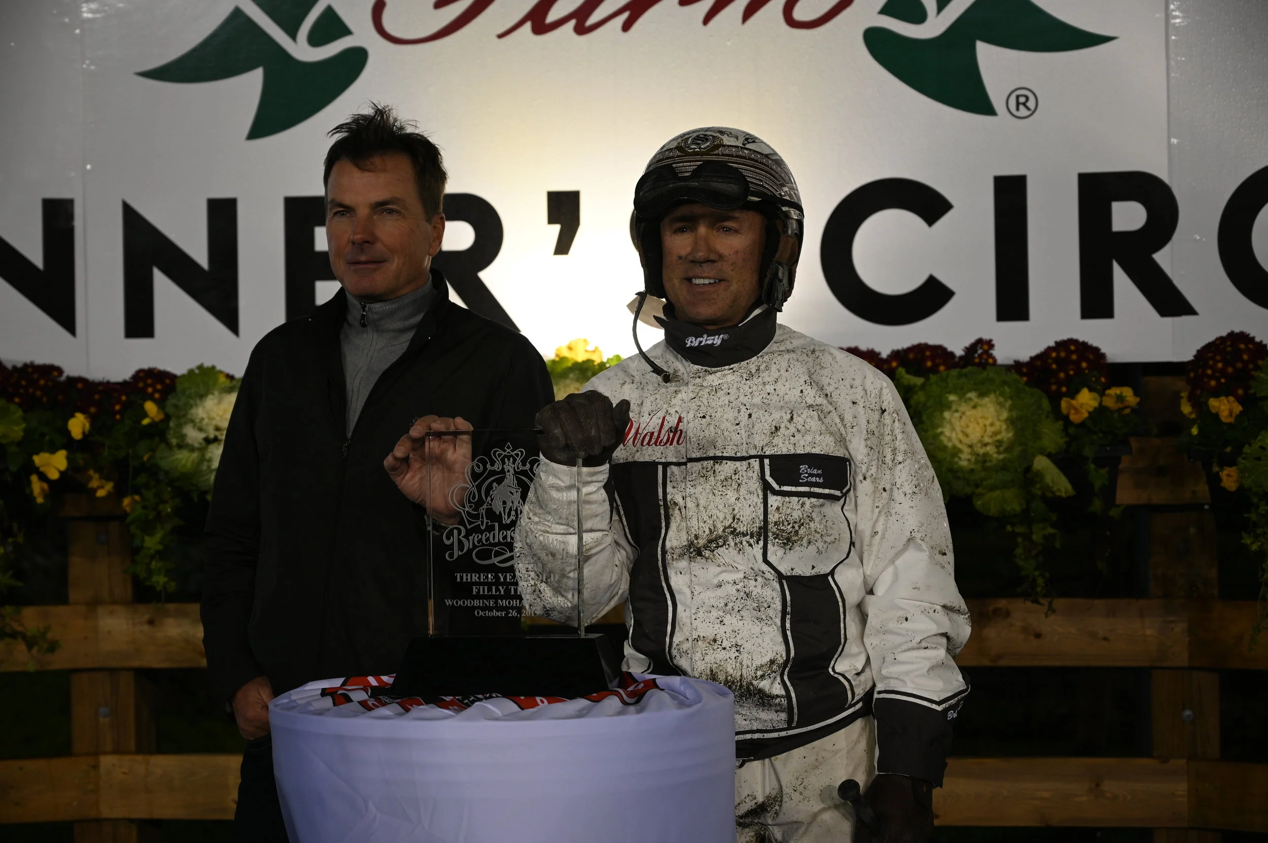 MILTON, ONTARIO, October 26 – Brian Sears guided race-favorite Winndevie to a late-charging win in the $655,000 (CAD) Breeders Crown Two-Year-Old Filly Trot Final at Woodbine Mohawk Park on Saturday. The winning mile went in 1:53.