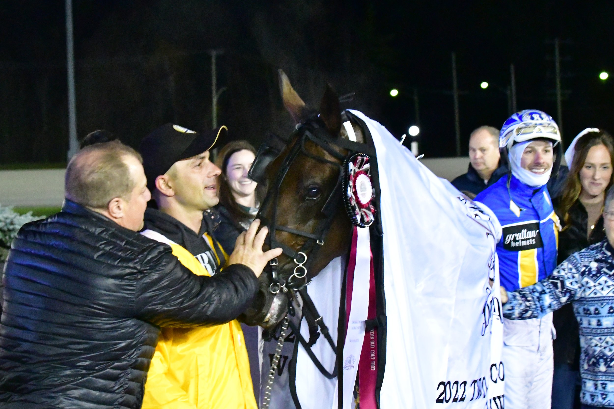 MILTON, October 28, 2022 – Gaines Hanover kicked off the 2022 Breeders Crown Friday night at Woodbine Mohawk Park and scored an impressive victory in the $810,000 final for two-year-old trotting colts giving his driver, Louis-Philippe Roy, and trainer, Richard Moreau their first Crown victories in their very successful careers.