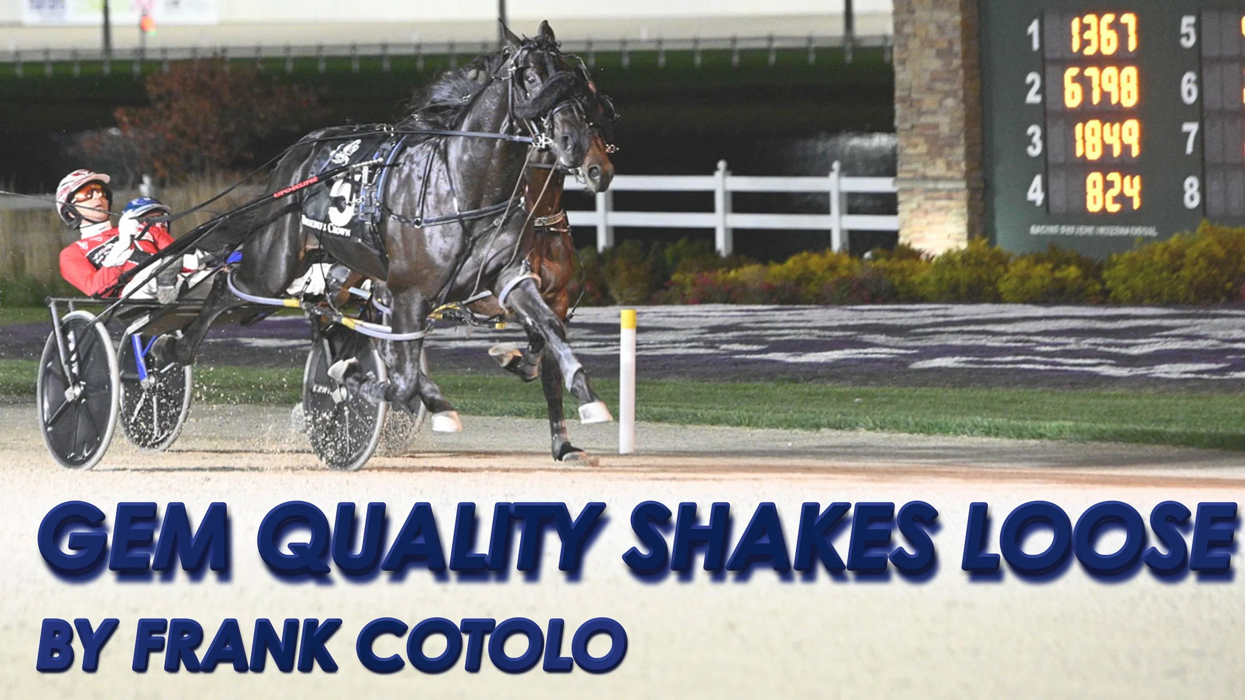Full of pace throughout, two strong moves helped 23-1 Gem Quality and driver Dexter Dunn glide down the stretch.to a 1:50 mile, setting the track record for 2-year-old colt pacers.