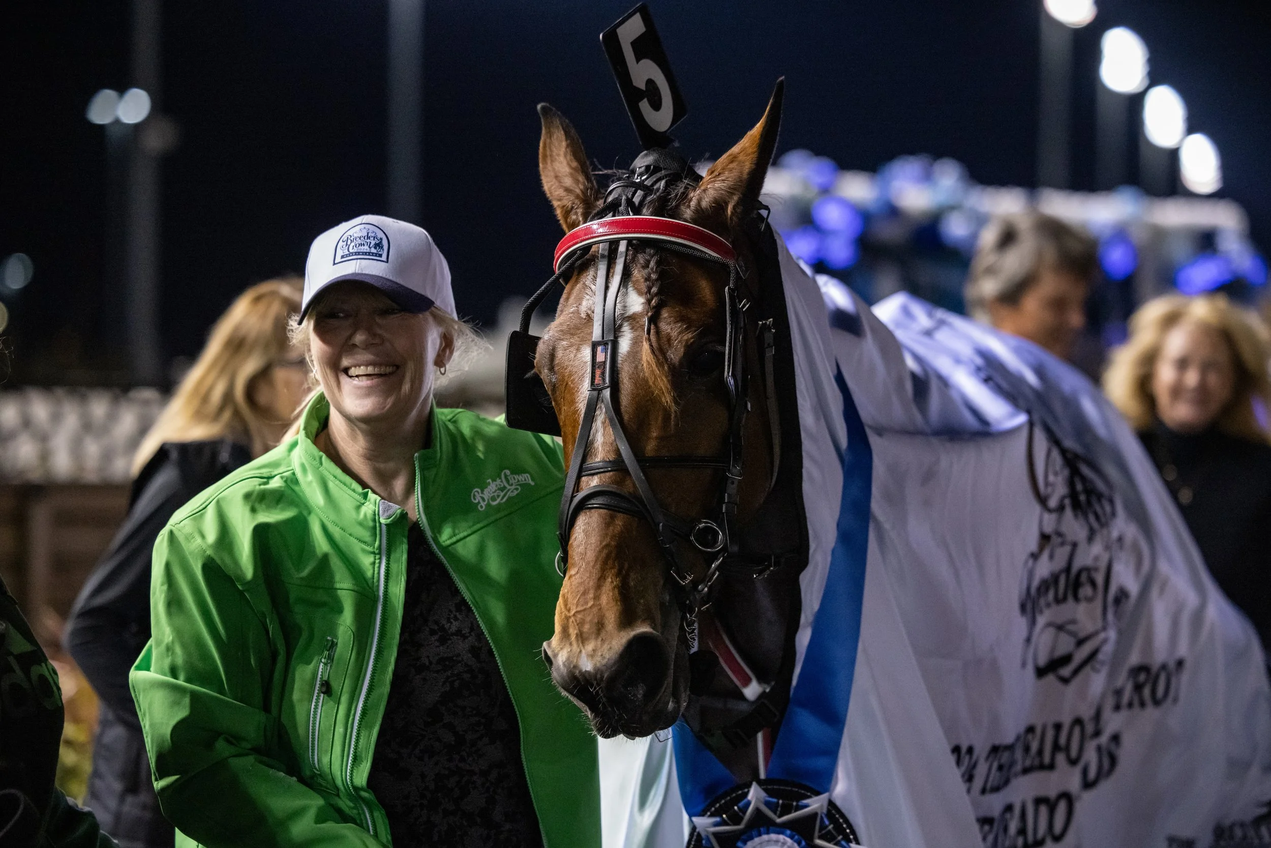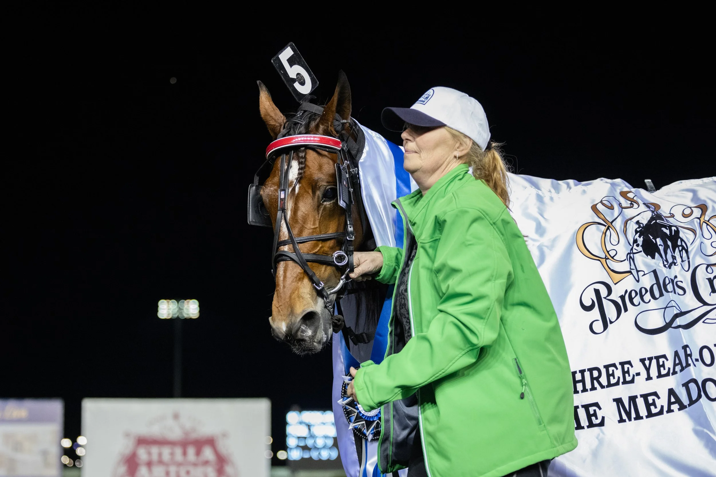 Zeron scored his eighth Breeders Crown trophy with his second-straight win driving Allegiant. "I was happy to sit in the second spot," he said after the race. "She shows me no emotion [when we race]." He also praised trainer Linda Toscano, who won her ninth Breeders Crown trophy and first in this division, for how the filly has been handled.