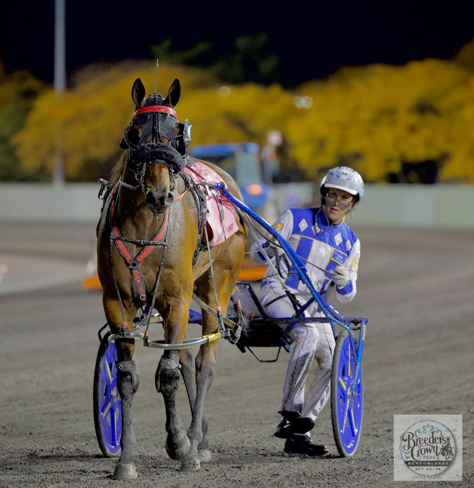 EAST RUTHERFORD, NJ – Coach Stefanos and driver James MacDonald swarmed a pair of longshots capitalizing from a melting pace to win the $600,000 Breeders Crown Open Pace final at The Meadowlands on Saturday (Oct. 26) in a 1:48.3 mile.