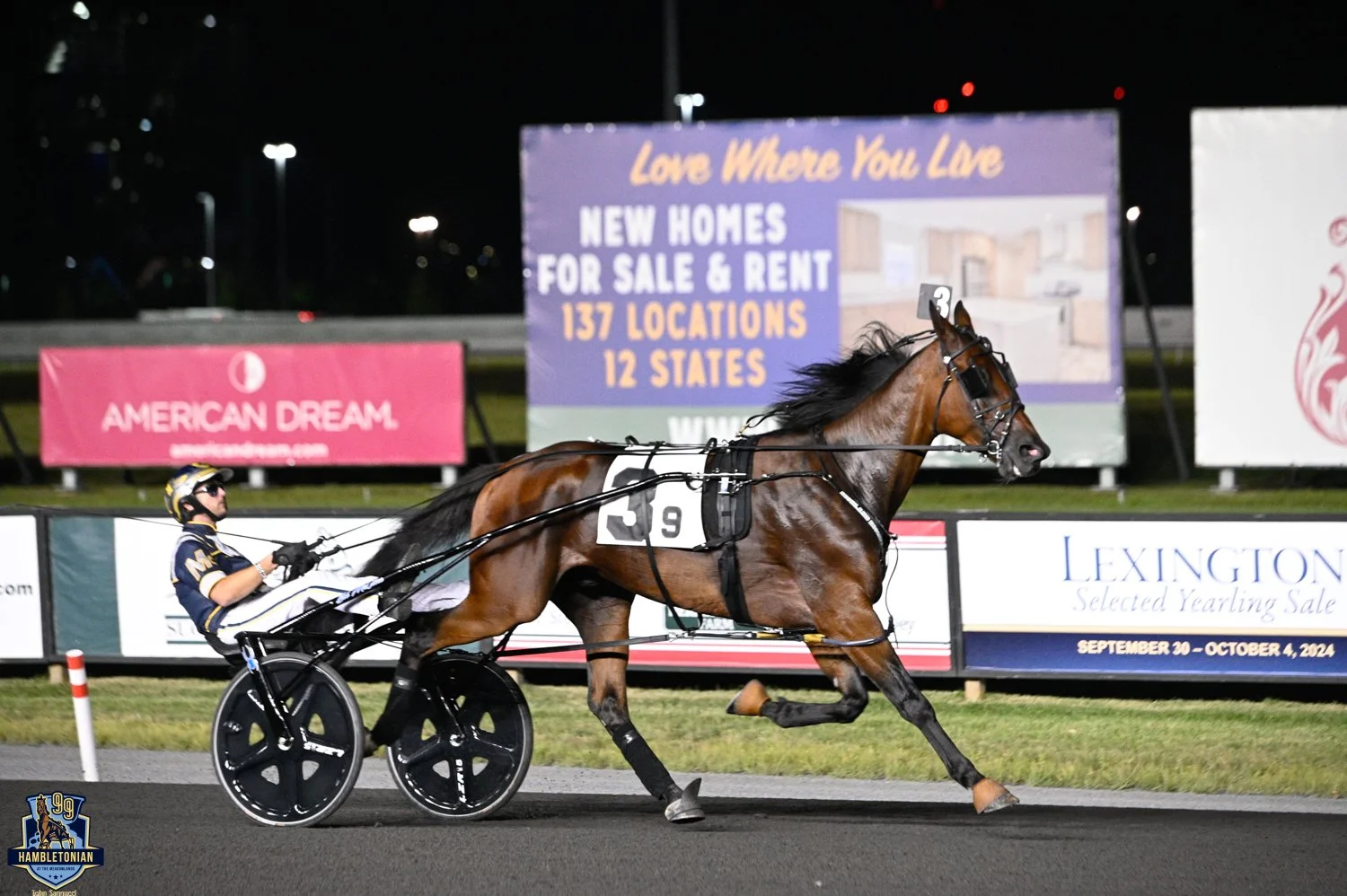 Sent off as the 4-1 second choice in the first Hambletonian elimination, Highland Kismet advanced to the final with a fourth-place result. He fanned out five-wide in the stretch after a fourth-over journey, ended up two lengths behind winner Karl and trotted a 26.1 last quarter-mile.