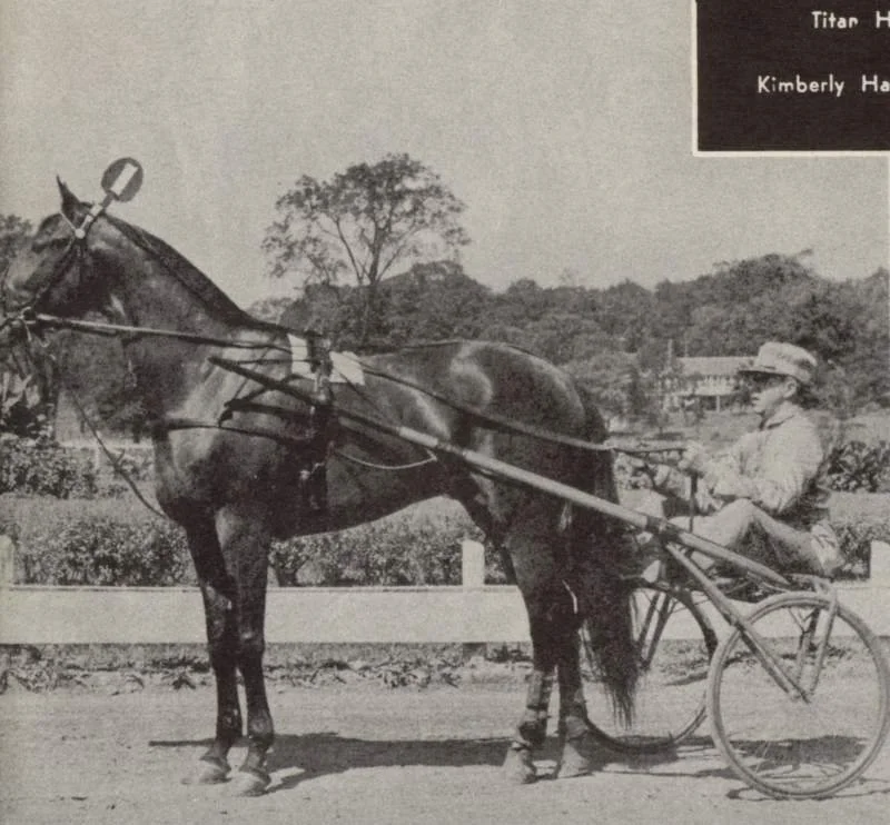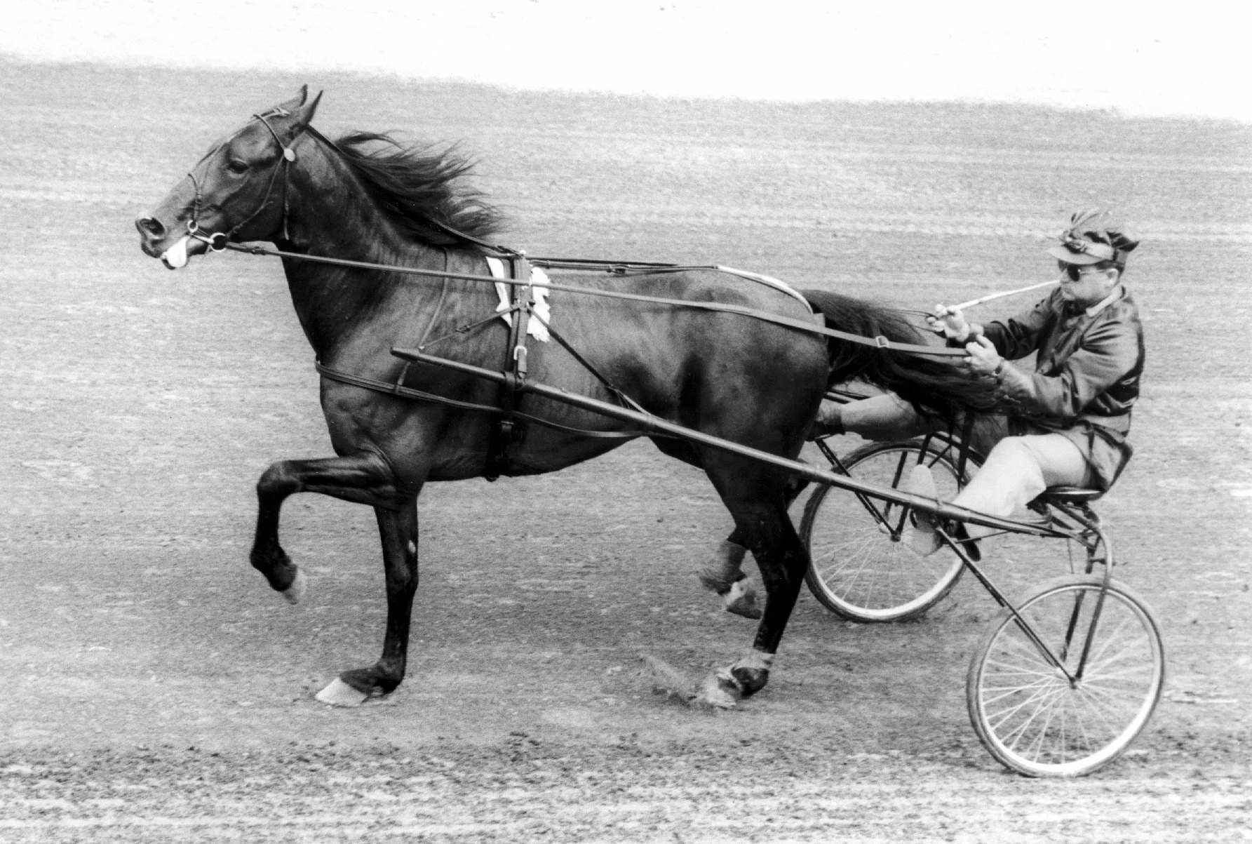 Short in stature but long on power and speed, Arden Homestead Stables’ Titan Hanover stood out as champion two- and three-year-old trotter. His mile in 2:00 at Lexington as a two-year-old slashed two full seconds off the juvenile standard, marking a milestone in harness horse history. Trainer Harry Pownall deserved full credit for the career of the "Fightin’ Titan" as he was a handful to break and train. Titan Hanover worked a mile at Roosevelt Raceway in 2:07¼ before going to the races. At Old Orchard, he split heats in his debut, tying for first with the fastest mile in 2:08½. Next he took the National Stake, the Tompkins Memorial at Goshen, the Harriman Challenge Trophy and the Horseman Stake and the Reading Futurity in the mud at Trenton. In his Lexington race he set a two-heat standard of 2:02¾, 2:02¾, timed better than 2:02 one trip. Then came an assault on the clock, the quarter in :29¼, the half cyclonic in :58¾, three-quarters in 1:29½, the mile achieved in 2:00. Again at three he was unbeaten, winning the Stallion Stake and the Matron Stake with ease. The $51,046.96 Hambletonian was next and Titan Hanover delivered easily according to expectations, though Axomite made it interesting for a few strides nearing home the first trip. Titan Hanover was an outstanding performer again at four and five, and retired to stud at Hanover Shoe Farm.