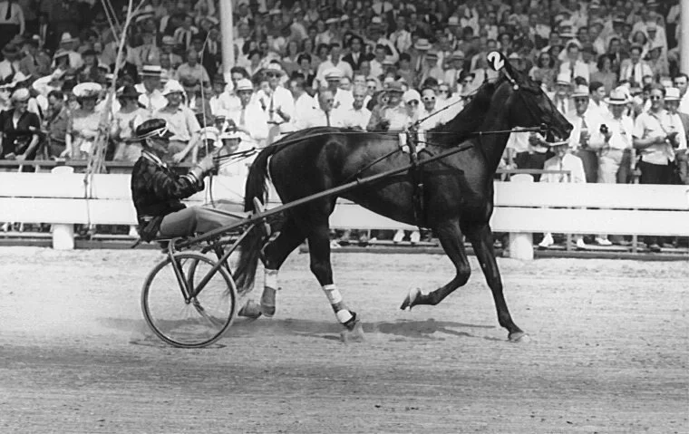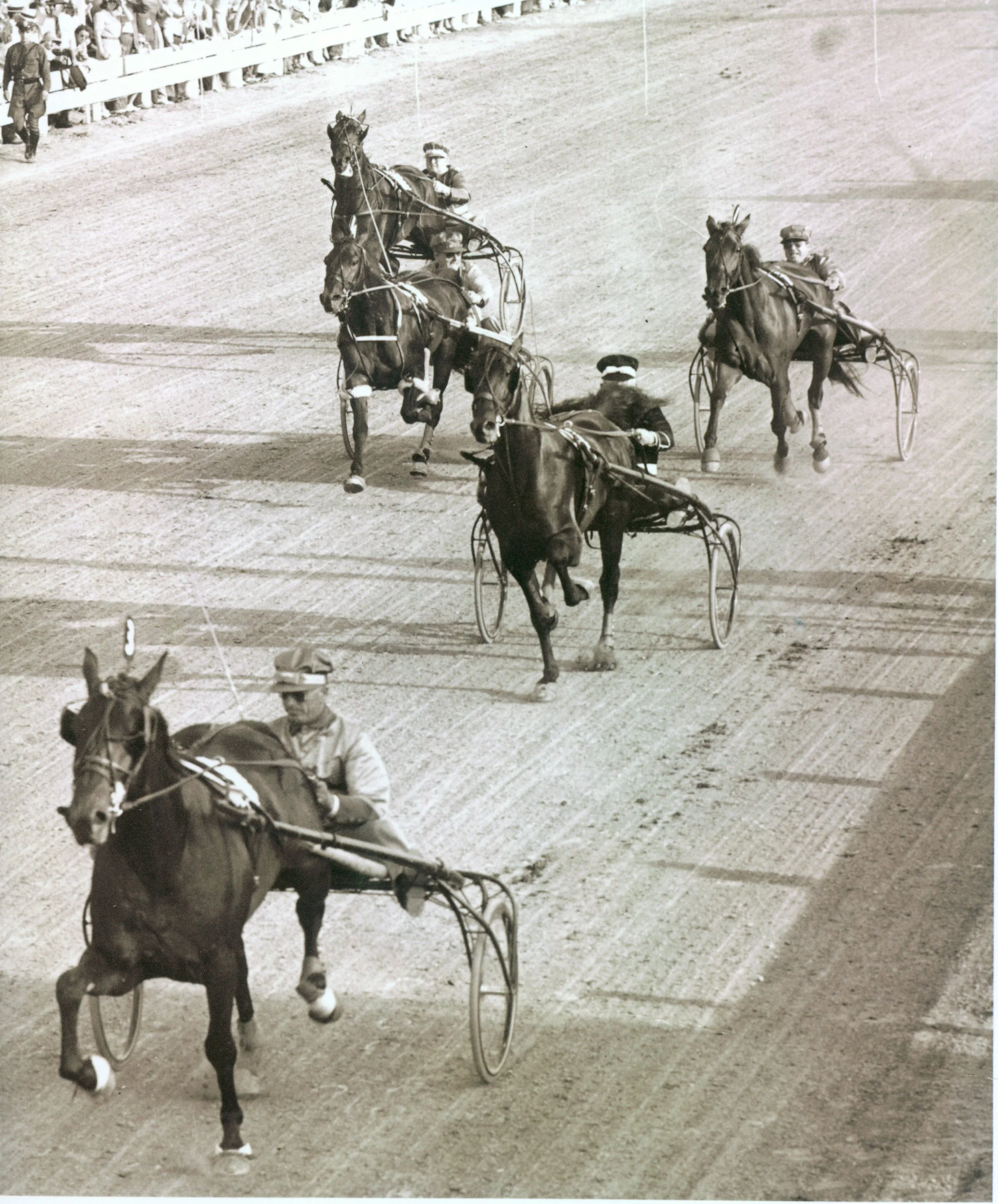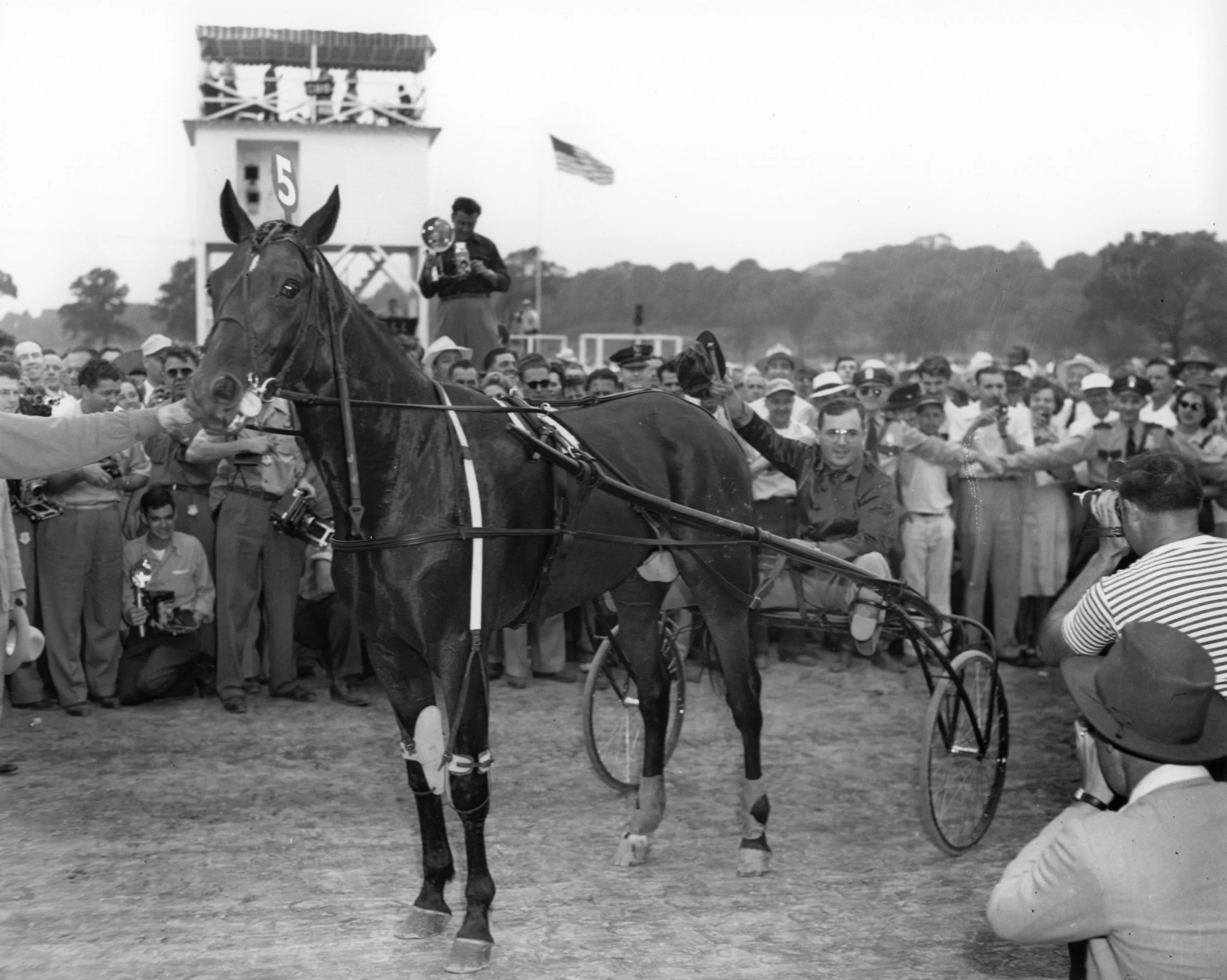 On the eve of the 1946 Hambletonian, William H. Cane sold Chestertown, a $6,500 yearling, to Walter E. Smith of Los Angeles for $40,000 after he defeated Victory Song in the National Stake. Smith turned the Volomite colt over to Tom Berry. In the first heat, Sep Palin scored with Victory Song by two lengths over Chestertown, but in the second heat, Don Scott struck Victory Song’s Wheel, causing a break. Chestertown went on to win the heat in 2:02½ over Deanna. In the final, Victory Song made a gallant try to catch Chestertown, but Berry kept his colt in front by a half-length in 2:03¼. Chestertown retired in 1950 with $108,864 in earnings, standing at stud at the Village Farm in Langhorne, Pennsylvania for one season, and then moved to Bonnie Brae Farm in Ohio.