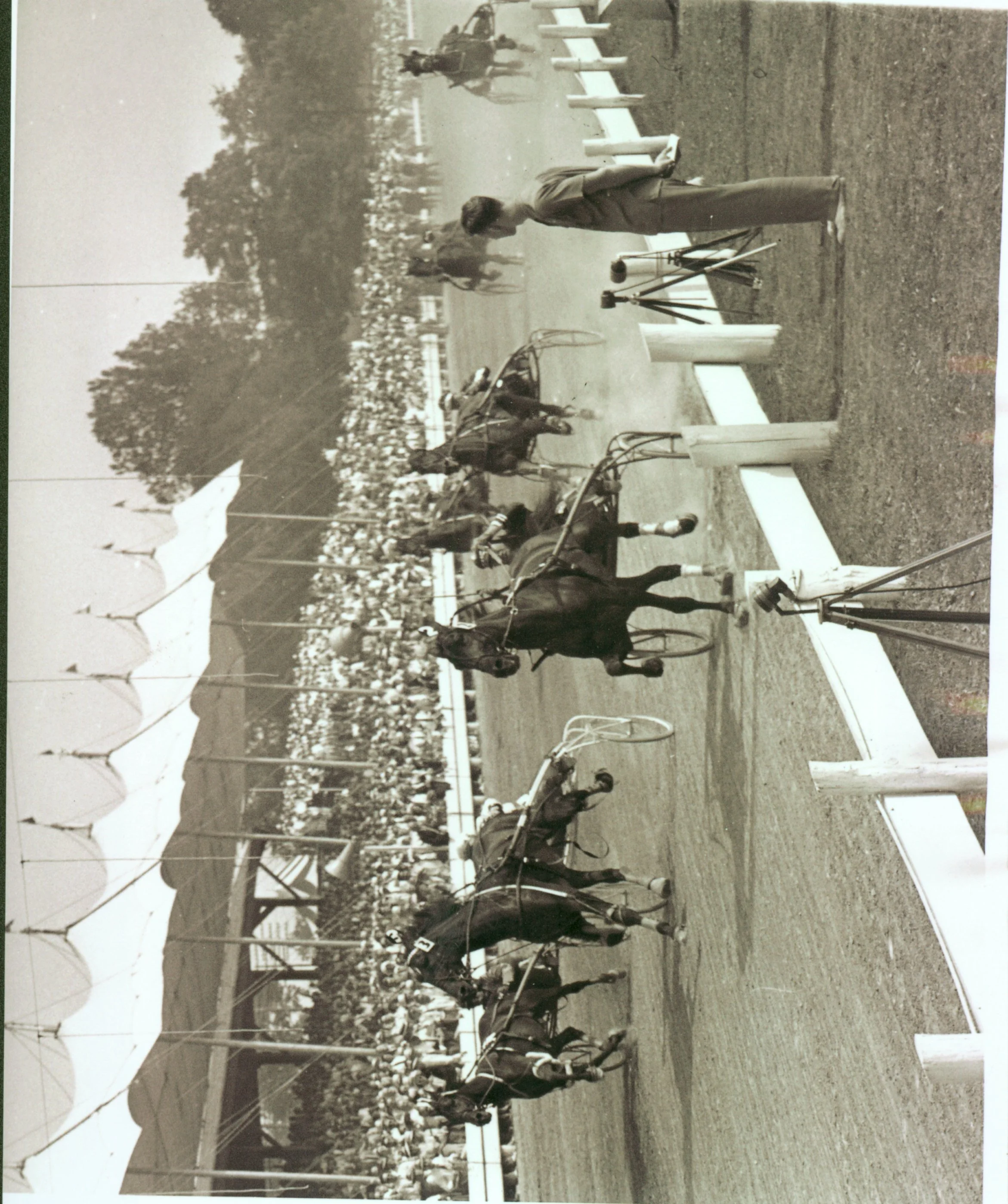 Harry Whitney, who had trained Chestertown until the day he was sold to Smith, finished fifth driving Westfield Girl. The previous year he was second with Kimberly Hanover (6-2). It was Whitney‘s best finish in 12 races, including eight years (1939-1946) which, at the time, was a record for consecutive Hambletonian drives. He never won a Hambletonian. It was Delvin Miller’s first starter in a record 26 Hambletonians (27 horses). His charge, Don Scott, finished fourth overall in the placing. Van Riddle, driven by owner Earl Rowe, was the first Canadian-owned horse to start in the Hambletonian. As reported in a trade magazine, the Hambletonian received coverage on television for the first time. It was possibly local and not network coverage, although the newsreels of the day recorded the event for the theater audience. The first year that the modern Steve Phillips starting gate was used to start the Hambletonian.