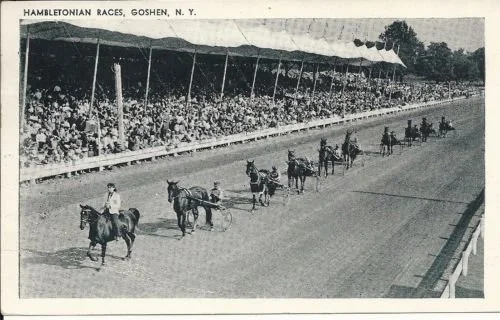 One handicapping sheet correctly predicted, "Bangaway may be the choice of millions but DON’T MISS TILLY!" despite the fact that it was her first win of the year – in straight heats – and she never won another. The time of the second and final heat of 2:01.2 was the fastest mile ever to date by a filly in the Hambletonian and was second only to Hoot Mon’s 2:00 stakes record. Tilly Tonka, the dam of Miss Tilly, was also the granddam of Hoot Mon (1947). Phellis, considered by many to be one of the foremost experts on Standardbred breeding bred both Hoot Mon and Miss Tilly. From a relatively small band of mares, he also bred the 1958 winner Emily’s Pride and, as mentioned above, suggested the pairing that produced Spencer Scott (1940). Nibble Hanover, the sire of Miss Tilly, was the only stallion to produce a Hambletonian winner and a Little Brown Jug winner (Knight Dream, 1948). Ben White drove in his last Hambletonian at age 76. His horse William Wells finished 7-11. For an unprecedented third time, a horse owned by Coldstream Stud of Lexington, KY finished second. 1934, Coldstream (operated by C. B. Shauffer of Chicago and later by Dale Shauffer of Detroit) never won a Hambletonian and holds the distinction as the owner who finished 2nd the greatest number of times without winning. The farm is now a part of the University of Kentucky. Hall of Fame of the Trotter (later renamed the Harness Racing Museum & Hall of Fame) was founded in Goshen, NY. May 5th marked the 100th anniversary of Hambletonian 10’s foaling near Sugar Loaf, NY.