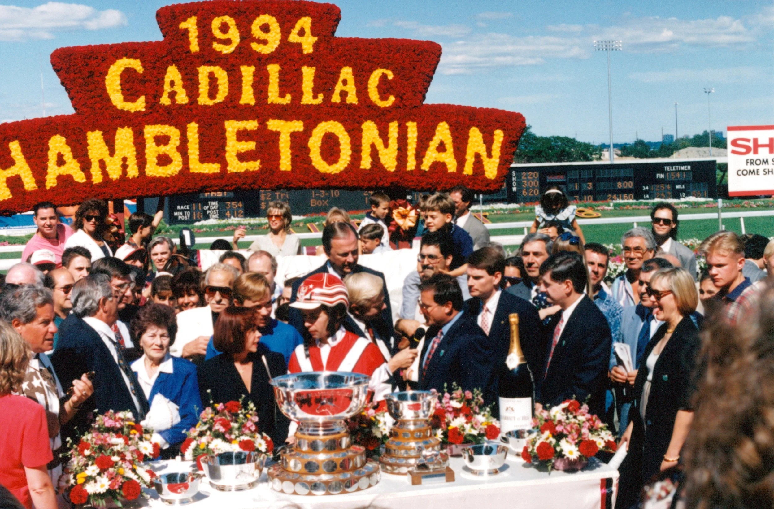 Guy "Sonny" Antonacci, a member of the Victory Dream Stable, has been a co-owner on a record four Hambletonian winners (Lindy's Pride, 1969; Probe, 1989; Harmonious, 1990; Victory Dream, 1994). His sons, Frank and Gerry, who comprise Lindy Racing Stable, have been co-owners on: Victory Dream, Harmonious and Probe. His cousin, Frank J. Antonacci, has been a co-owner of: Lindy's Pride, Speedy Crown and Victory Dream. Victory Dream was from the first crop of Valley Victory, who along with Mystic Park are th youngest sires (4-years-old) to produce a Hambletonian winner. The Minnehaha maternal family producted a record-tying ninth Hambletonian winner. Victory Dream was voted the 3-year-old Trotting Colt of the Year. Runner up Mr. Lavec, although trained in the U.S. by Swedish native Jimmy Takter, was a Swedish-sired and bred colt by 1978 winner Speedy Somolli. He was the first European-sired horse in the classic. (Speedy Somolli was exported and stood in Sweden since 1990). Mr. Lavec finished second in his elim and second in the final beaten 2 3/4 lengths - the best finish ever by a European-bred horse in the Hambletonian. The colt was raised at owner Johan Diedan's farm in Ireland. Amateur driver Mal Burroughs won the Oaks with Gleam.