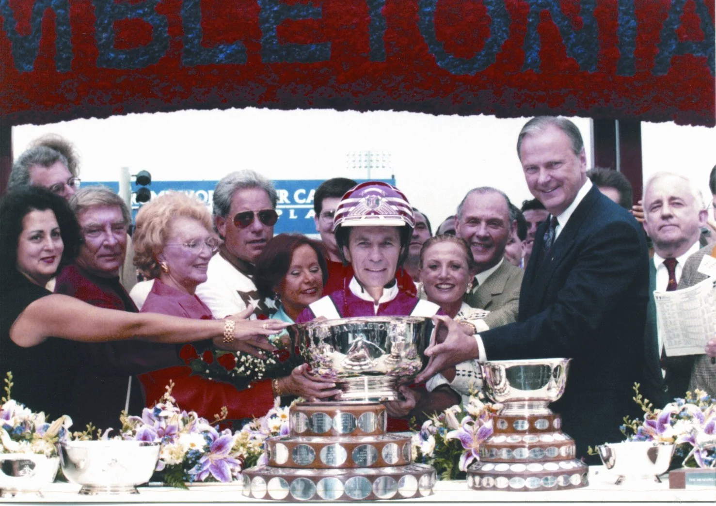 The final Hambletonian of the 20th century set new standards for the sport as two industry records were shattered on an electric August afternoon. In a blistering performance, Self Possessed posted the fastest trotting mile in harness history in the $1 million final, and the total handle of $7,132,583 set the mark as the highest in the sport. The charismatic colt commanded the lead at the half and drew off to an effortless five and a half-length victory in 1:51.3, a stakes, track and world record. Self Possessed gave the team of driver Mike Lachance and trainer Ron Gurfein their third Hambletonian in six years. Lachance and Gurfein won in 1994 with Self Possessed's sire, Victory Dream, and in 1996 with the filly Continentalvictory. "I can't take credit for it," Lachance said. "He did it on his own, and it was very easy for him. It's a very special day for me." Though the end-result was a dream come true, Gurfein admitted the race did not start out as he imagined while drifting off to sleep the night before. "I was picturing Secretariat," Gurfein said. "Watching Secretariat in the Belmont Stakes, well that's a dream race for a trainer. I pictured Self Possessed going right to the top and just drawing off. Mike had a lot of decisions to make from the start to the quarter-pole. That was one of the greatest drives for $1 million you'll ever see in your life." Self Possessed became the first sone of a Hambletonian winner to win the Hambletonian at the Meadowlands. His victory solidified Victory Dream's status as a top stakes producer and added another laurel to the Valley Victory lineage. As a member of the Self Possessed Stable, George Segal's Brittany Famrs earned its first owner's credit, and its second breeder's, in the Hambletonian. Brittany, which also bred Continentalvictory, sold Self Possessed at aution as a yearling for $100,000, but later joined the ownership team through a private purchase.