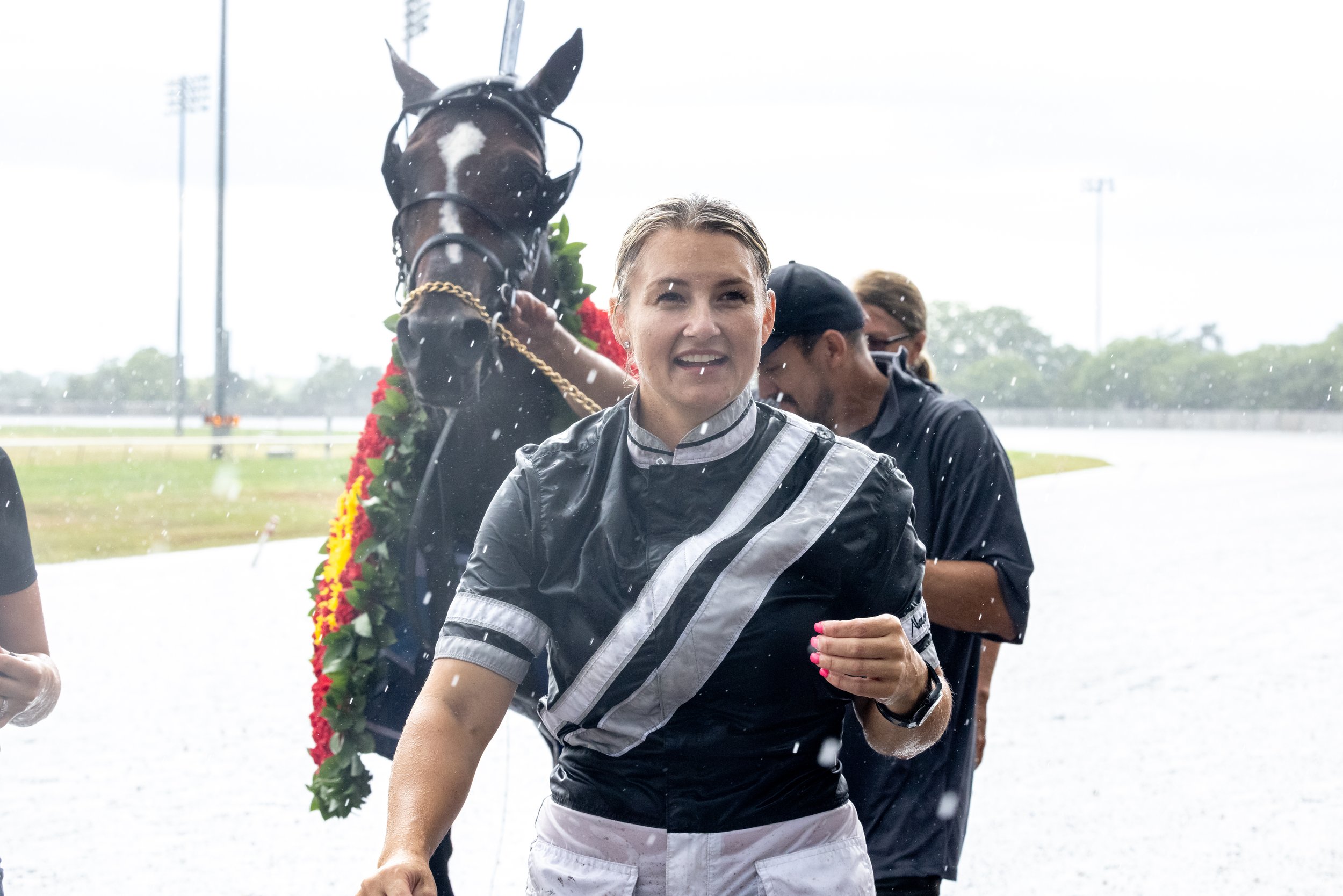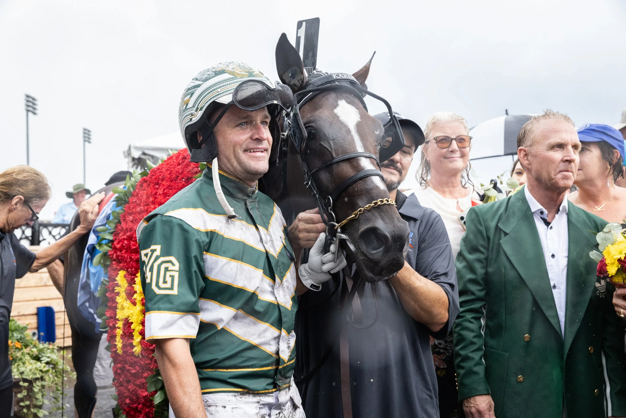 “I was definitely a lot prettier in the winner’s circle last year, and a lot drier” said a thoroughly-drenched Takter. “He’s just an amazing horse.”