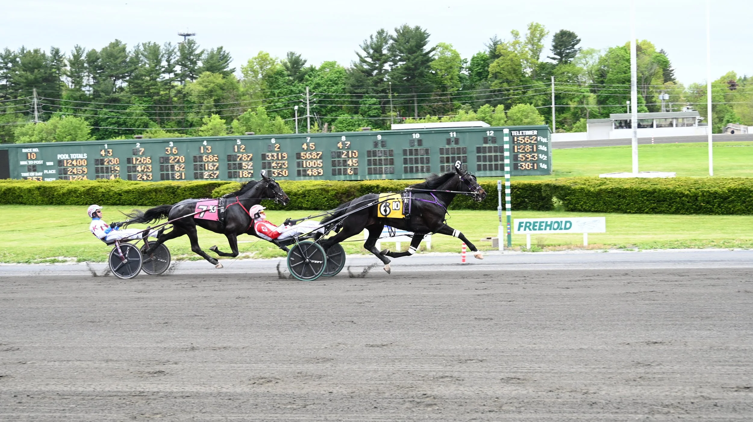 Julie Miller-trained Alpine, with driver Andy Miller, inherited the lead as a result and turned for home with the lead. However, 15-1 longshot Spruce Creek, who was rated on the pylons the whole way by Dan Dube, stormed up the outside late to win by 2-1/2 lengths in 1:58. Alpine, Insured Am S, Move Over Some, Hot As Hill, Presto, and Big Sky Suprise rounded out the order of finish.
