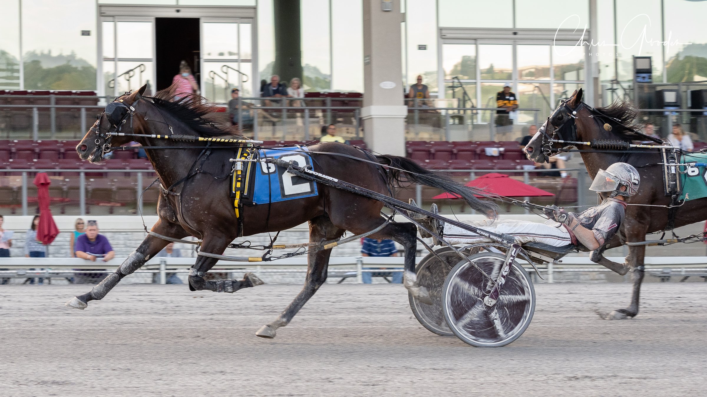In the other split, Julie and Andy Miller teamed up again to triumph with Pub Crawl who, on paper, at least appeared to lay over the field. The 1-5 favorite did nothing to dispel that notion, jogging in 1:56.1 and defeating Keystone Barracuda by 4 lengths. Myreanna earned show.