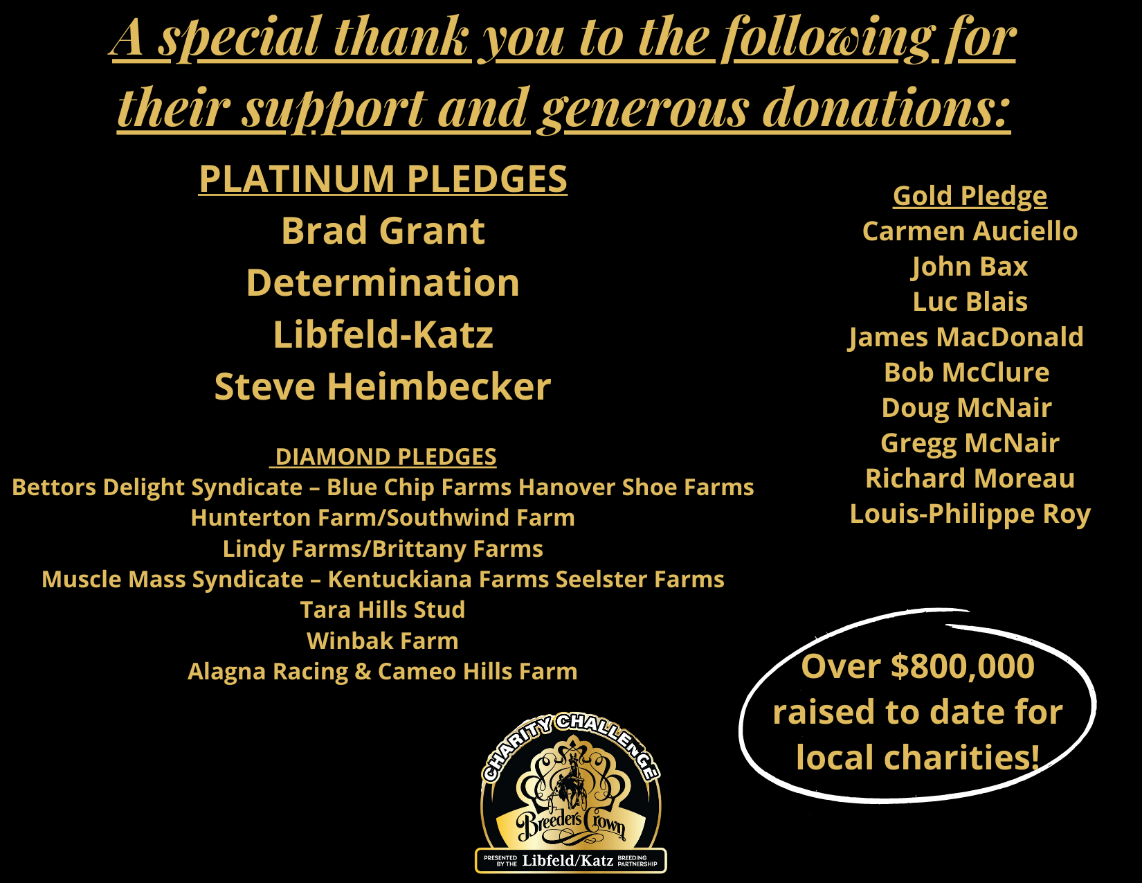 Established in 2019 at Woodbine Mohawk Park, the BCCC has raised more than $800,000 for local charities of each year’s Breeders Crown host track. In 2021, the challenge set a new event record, raising over $400,000 for charities in The Meadowlands (East Rutherford, New Jersey) area.