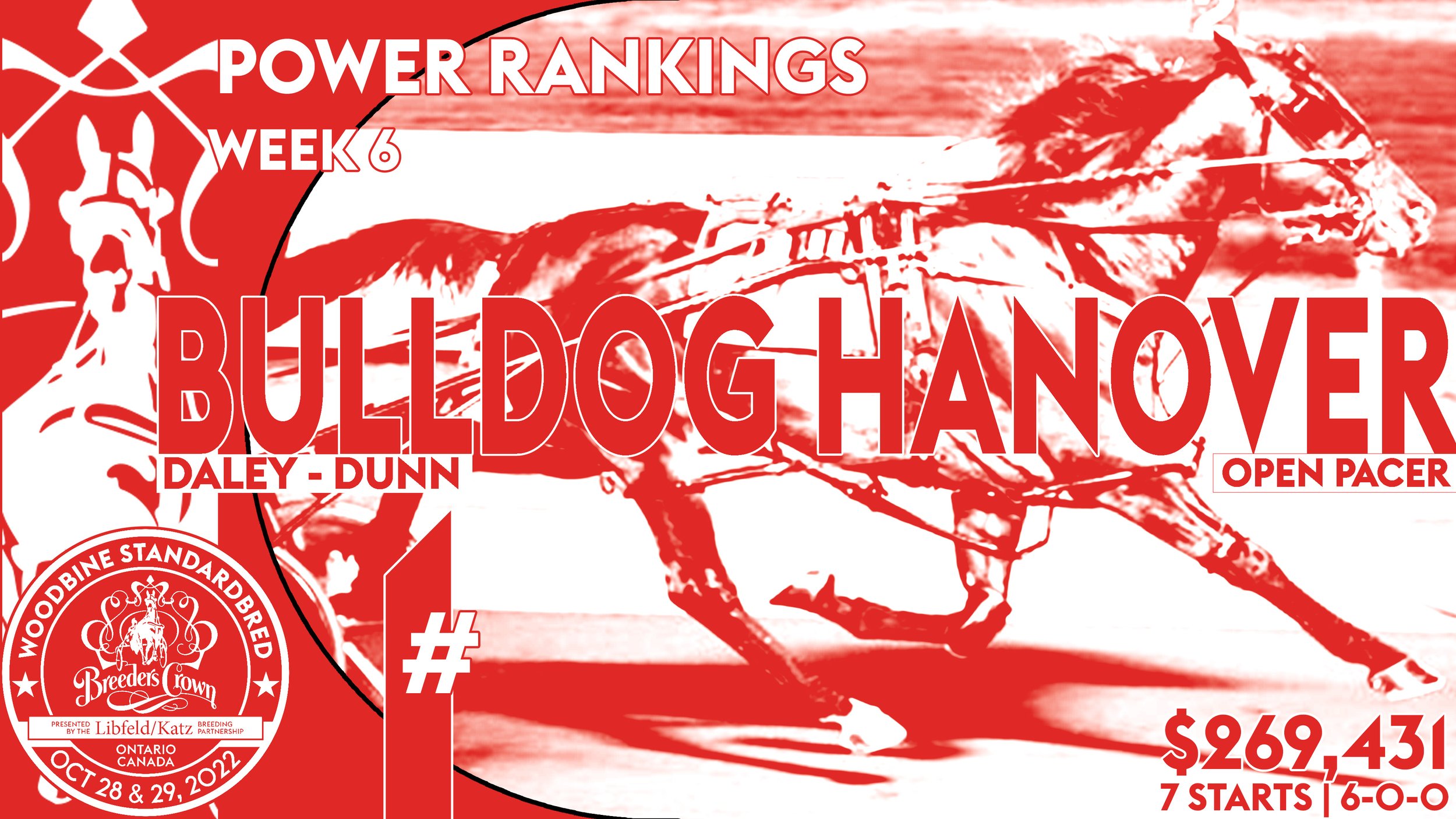 Hightstown, NJ — A new week, a new No. 1 in the Hambletonian Society/Breeders Crown poll. Bulldog Hanover grabbed the top spot in this week’s rankings, becoming the fourth different horse to ascend to No. 1 in the poll’s six weeks.